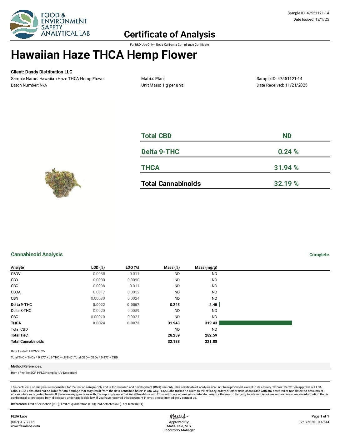 - Genetics: A hybrid of the Sativa strains Hawaiian and Haze