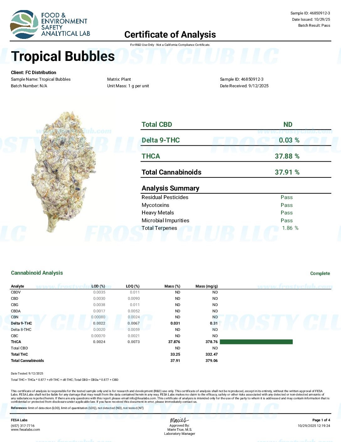 Tropical Bubbles is a potent, sativa-leaning strain with a sweet tropical profile and a clean, uplifting feel.